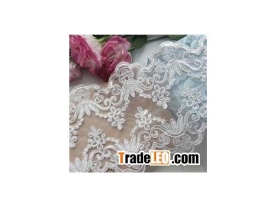 This lace is used on the wedding dress, as normal, the handfeel of this lace is very stiff with the 3D epiphyseal line on it. It is helpful to add the lace hardness and 3D effect of this lace. Nowadays, this wedding lace not only usedon the wedding dress, but also used on some denim design, included luggageand handbag.